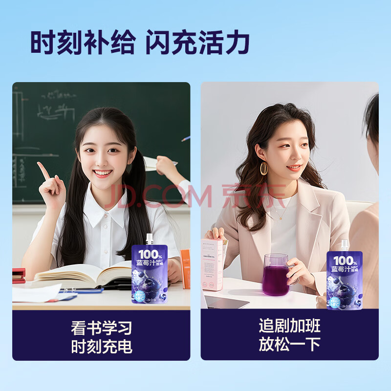 > 京东京造100%NFC蓝莓汁180g*10精制年货礼盒0脂0添加糖纯果汁花青素饮料