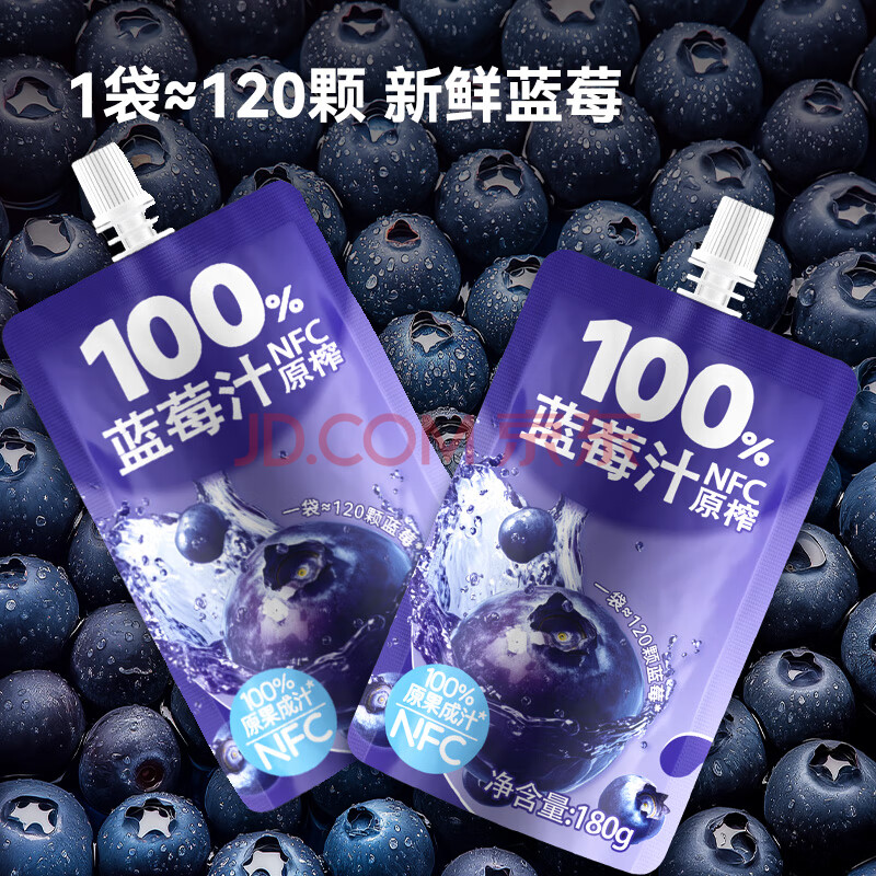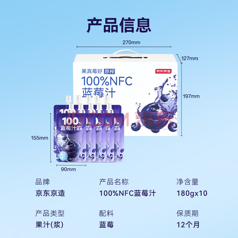 商品名称:京东京造100%NFC蓝莓汁180g*10精制年货礼盒0脂0添加糖纯果汁花青素饮料
