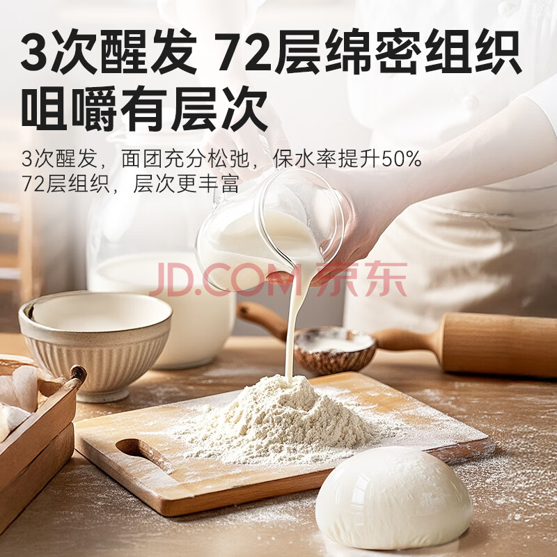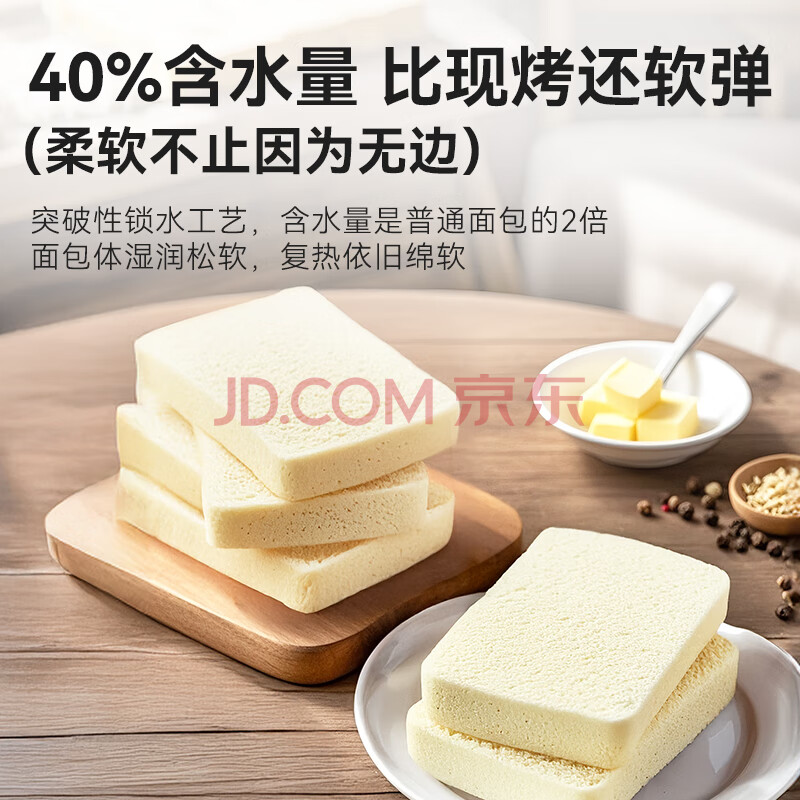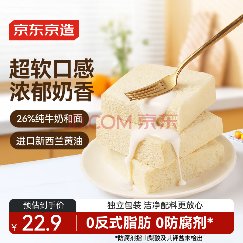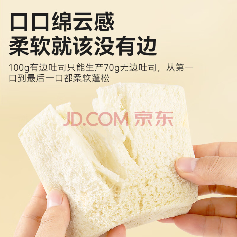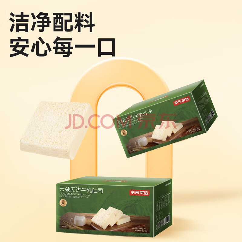 > 京东京造牛乳无边厚切吐司490g面包早餐糕点心充饥代餐零食0添加防腐剂
