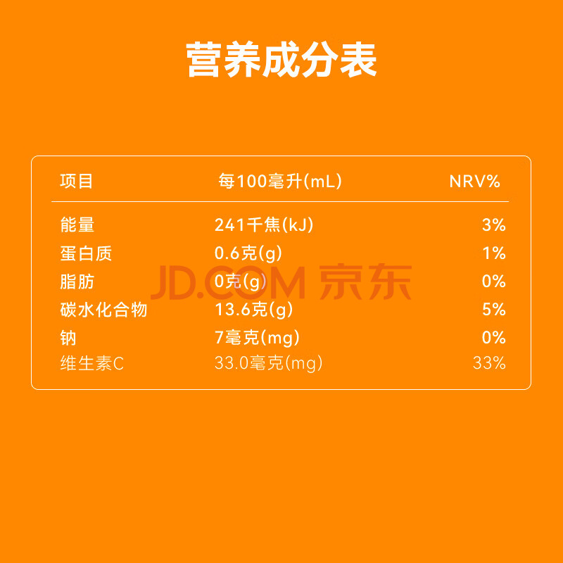 商品名称:京东京造100%NFC橙汁纯鲜果汁冷榨维C0添加糖0脂非浓缩1L饮料团购年货礼盒