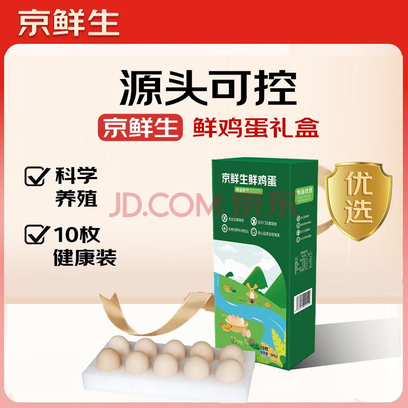 商品名称:京鲜生鲜鸡蛋10枚/盒 健康轻食 营养健康1斤/盒 源头直发