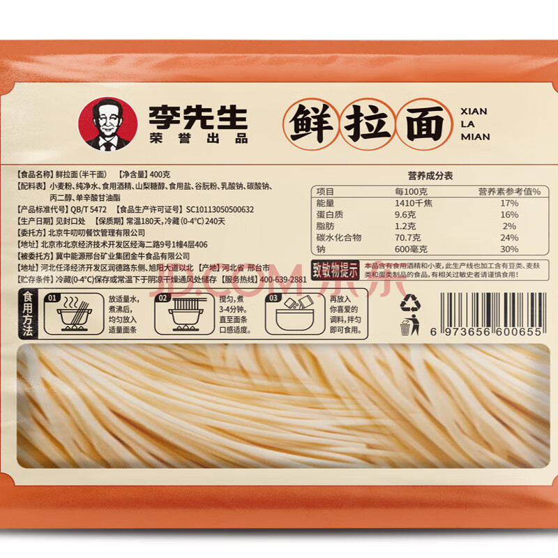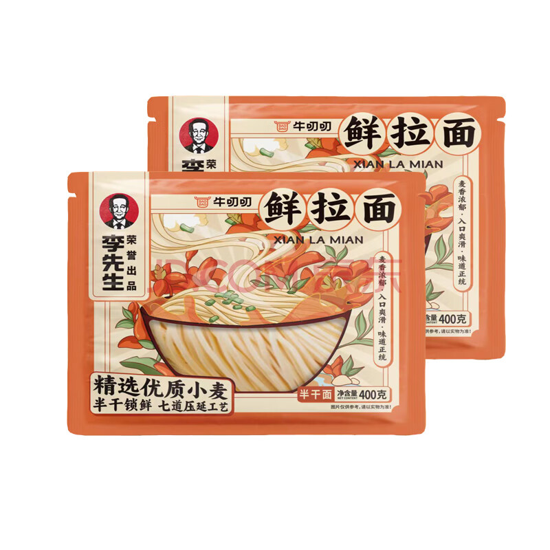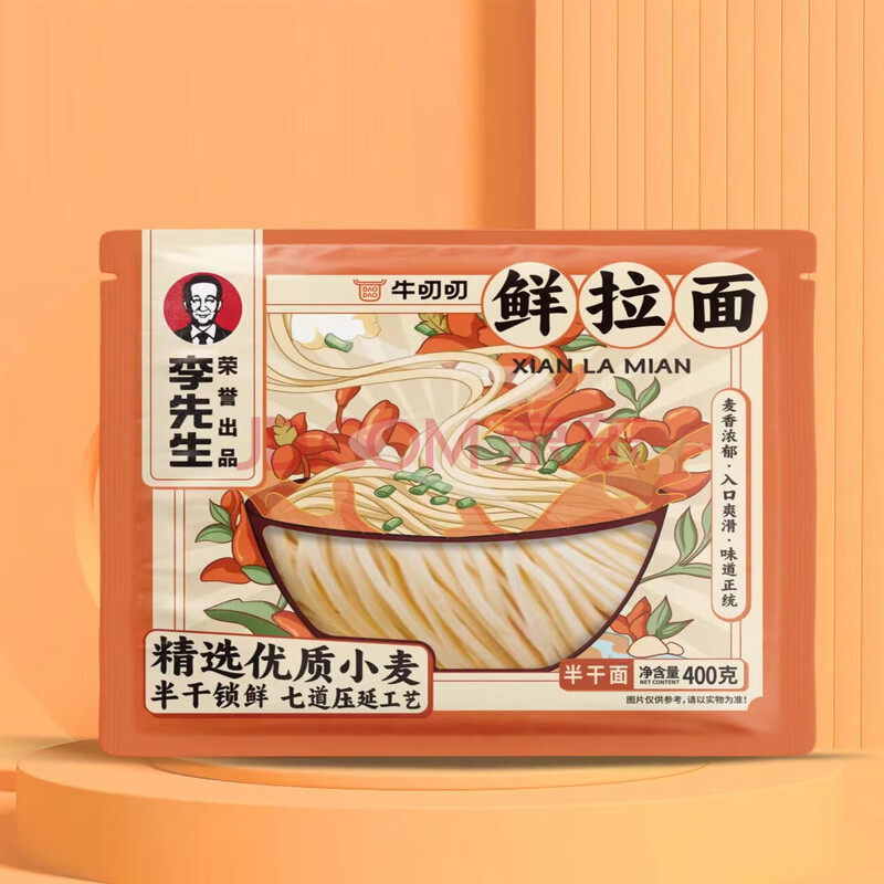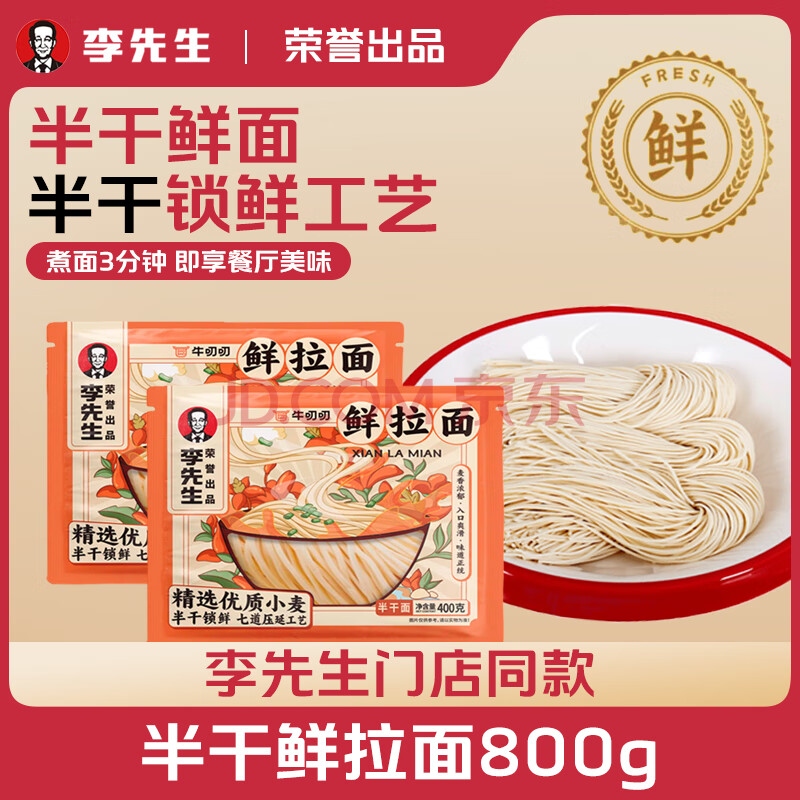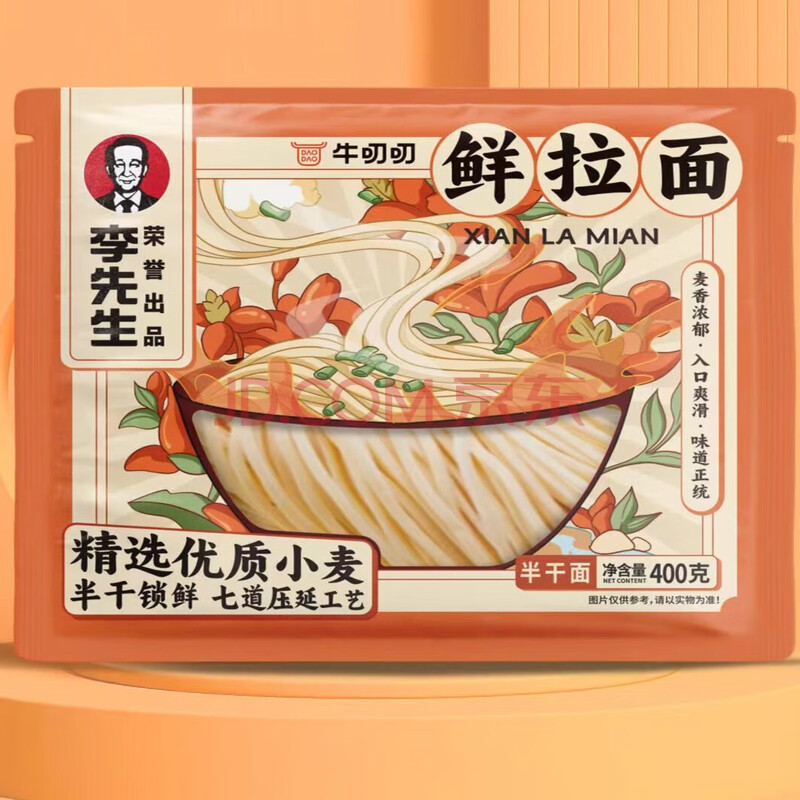 商品名称:牛叨叨李先生鲜拉面800g 半干鲜湿面条 挂面非油炸水煮方便速食兰州拉面