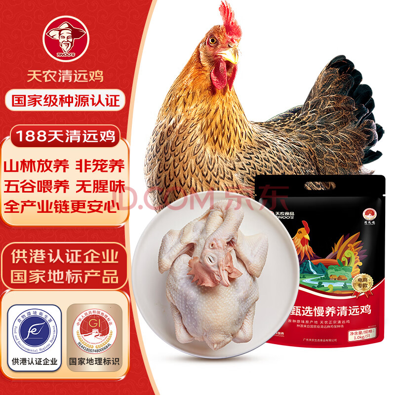 商品名称:天农 甄选纯种清远鸡 2斤 无抗供港走地鸡整鸡肉 冷冻 生态散养188天