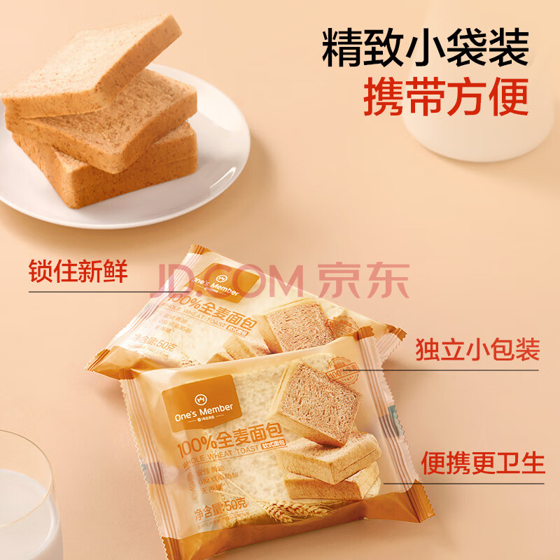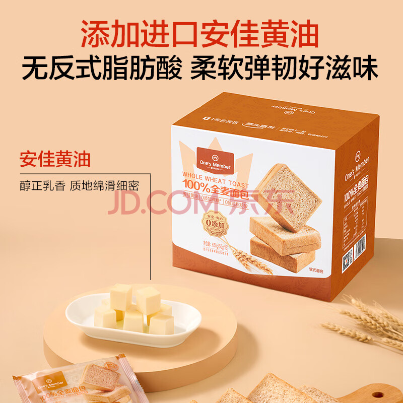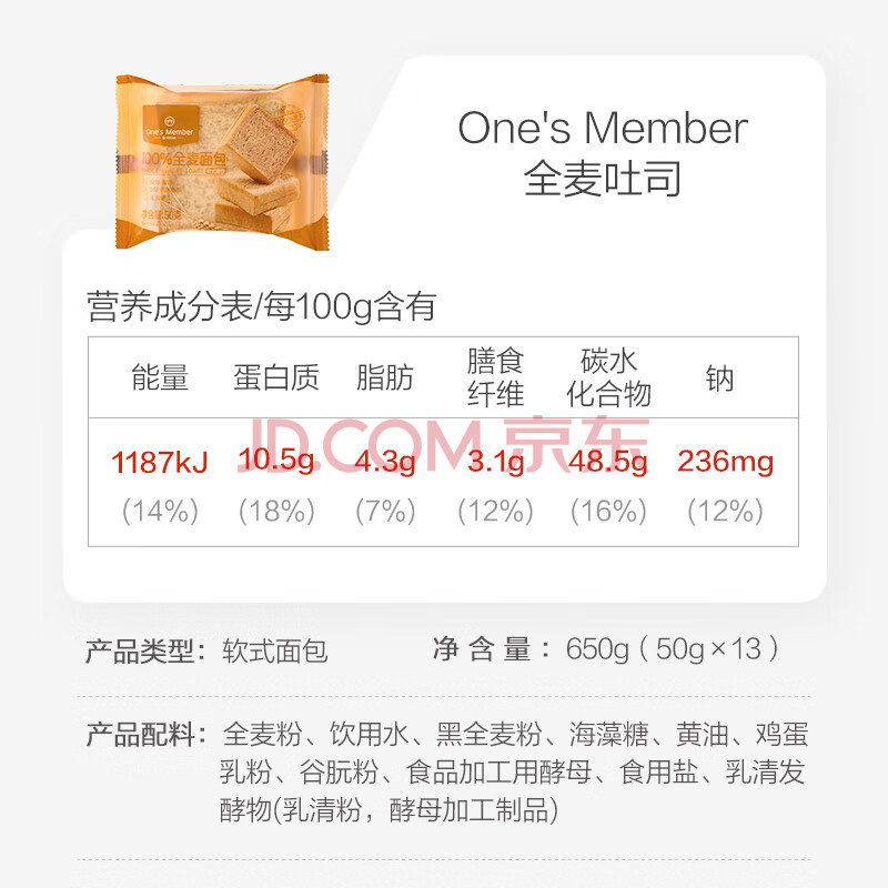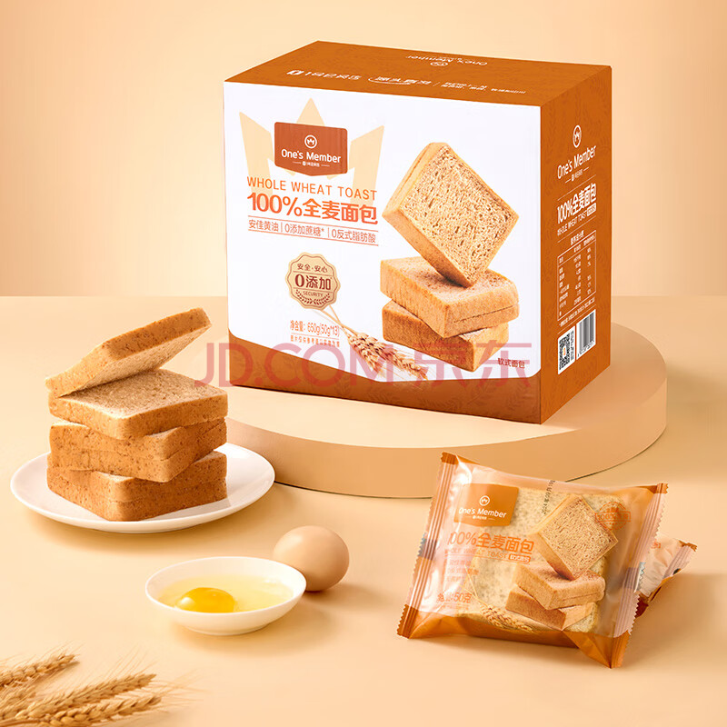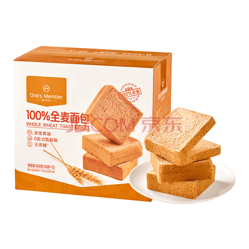 商品名称:1号会员店全麦面包650g(13枚*50g) 整箱装吐司营养早餐零食源头直发包邮