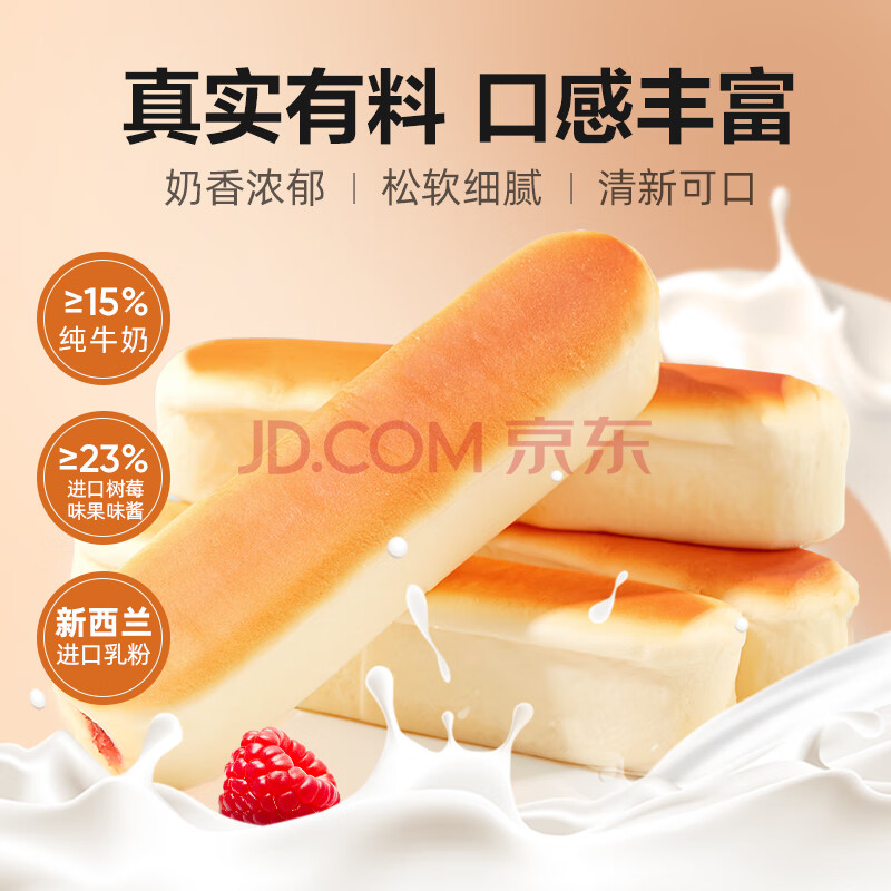 良品铺子树莓牛乳面包棒500g早餐代餐牛奶面包点心办公室零食