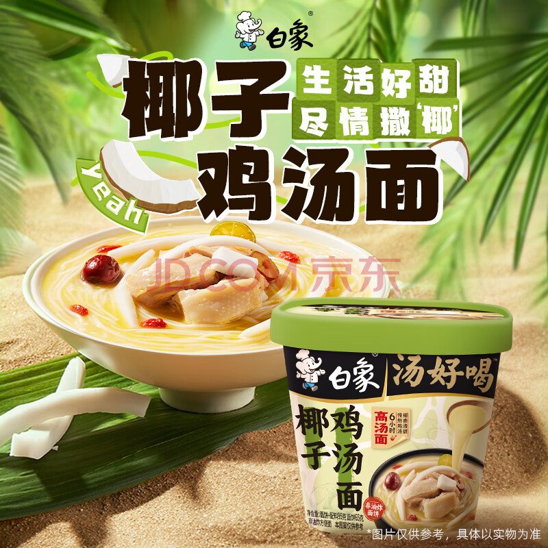 商品名称:白象 方便面 汤好喝椰子鸡汤面95g*6桶 桶装泡面 方便速食