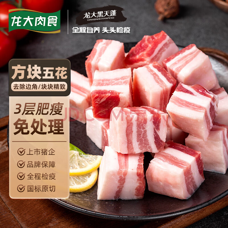 商品名称:龙大肉食黑猪五花肉800g 去皮五花肉 五花肉块 烧烤肉肠食材 黑猪肉 生鲜
