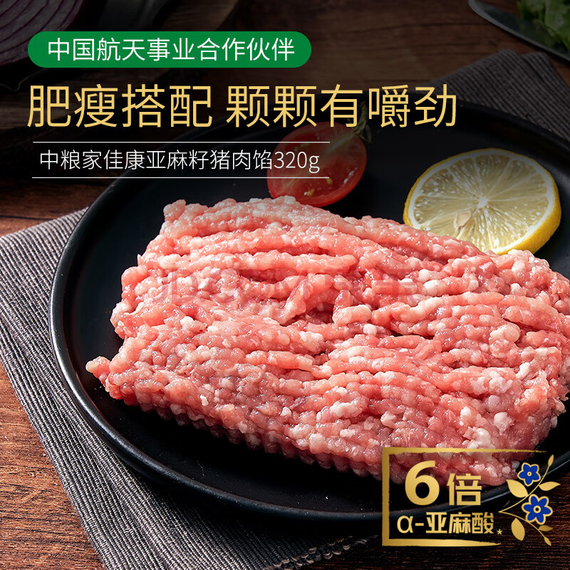 > 家佳康无抗亚麻籽猪肉馅320g 冷冻肉糜包子饺子丸子馅 国产猪肉生鲜