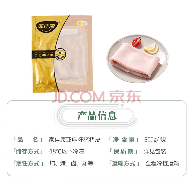商品名称:家佳康亚麻籽猪猪皮800g 冷冻猪皮冻 去毛去膘 自繁自养 中粮出品猪肉