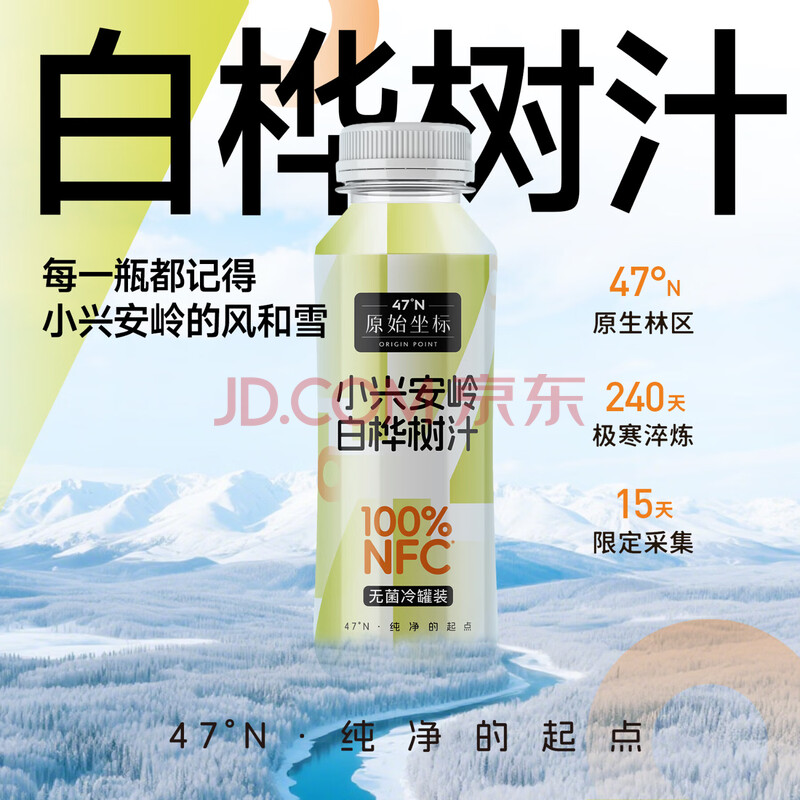 商品名称:原始坐标小兴安岭天然白桦树汁原液汁100%NFC饮料小分子活性水280ml*12瓶