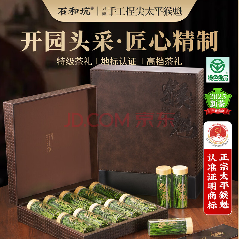 > 石和坑特级太平猴魁茶叶礼盒装高档送礼绿茶200g手工自营捏尖送领导长辈
