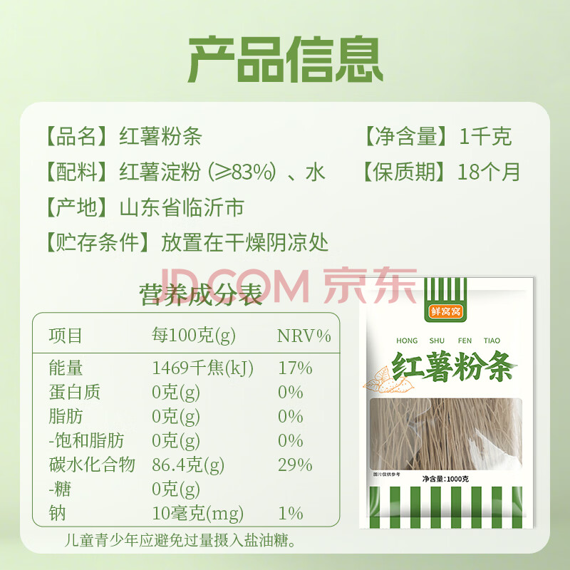 商品名称:鲜窝窝 纯红薯粉条1000g 酸辣粉丝方便速食火锅食材干货地瓜粉凉拌炖菜
