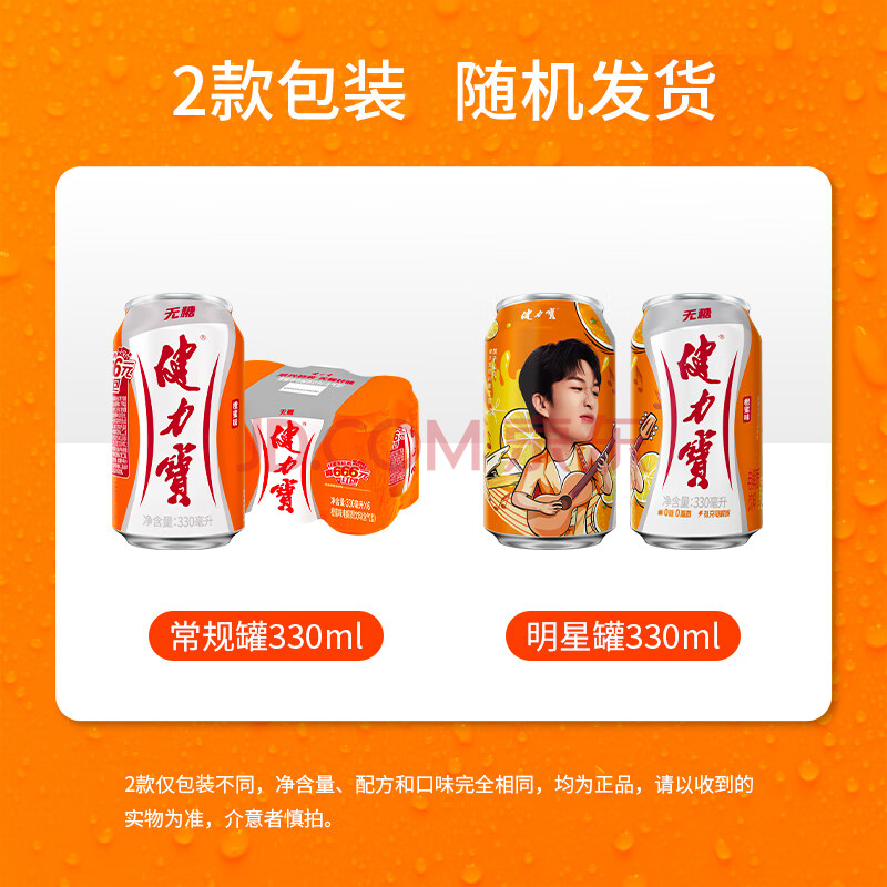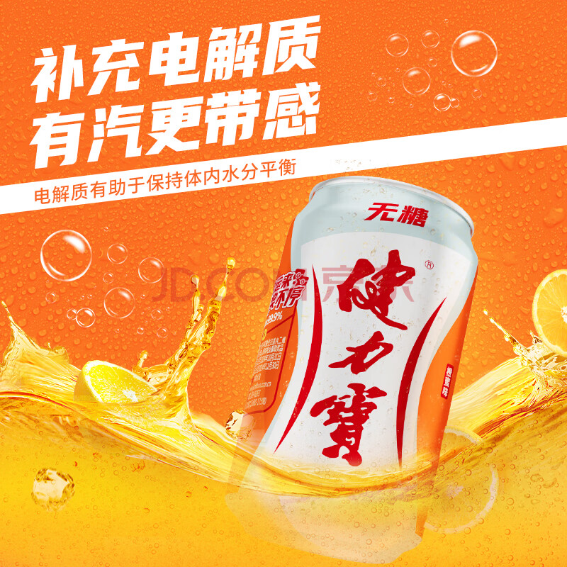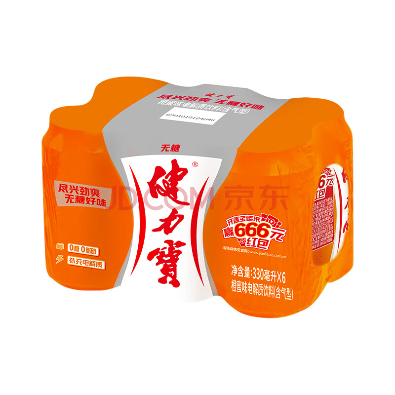 商品名称:健力宝0糖0脂0卡无糖橙蜜味330mL*6罐补充电解质运动碳酸饮料汽水