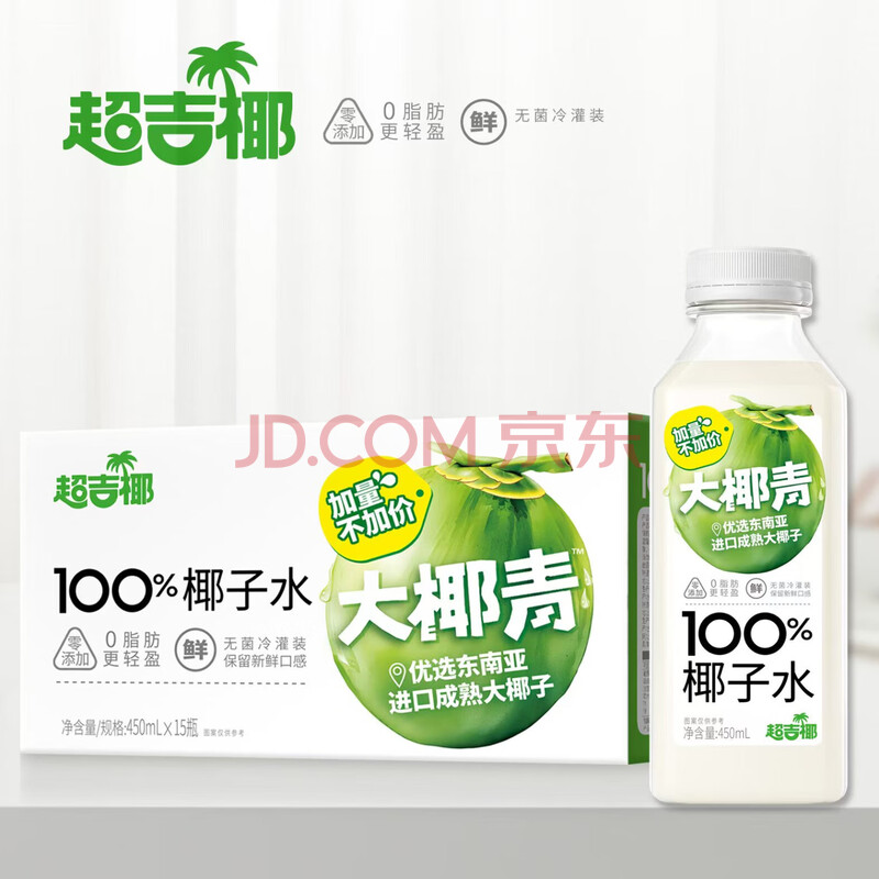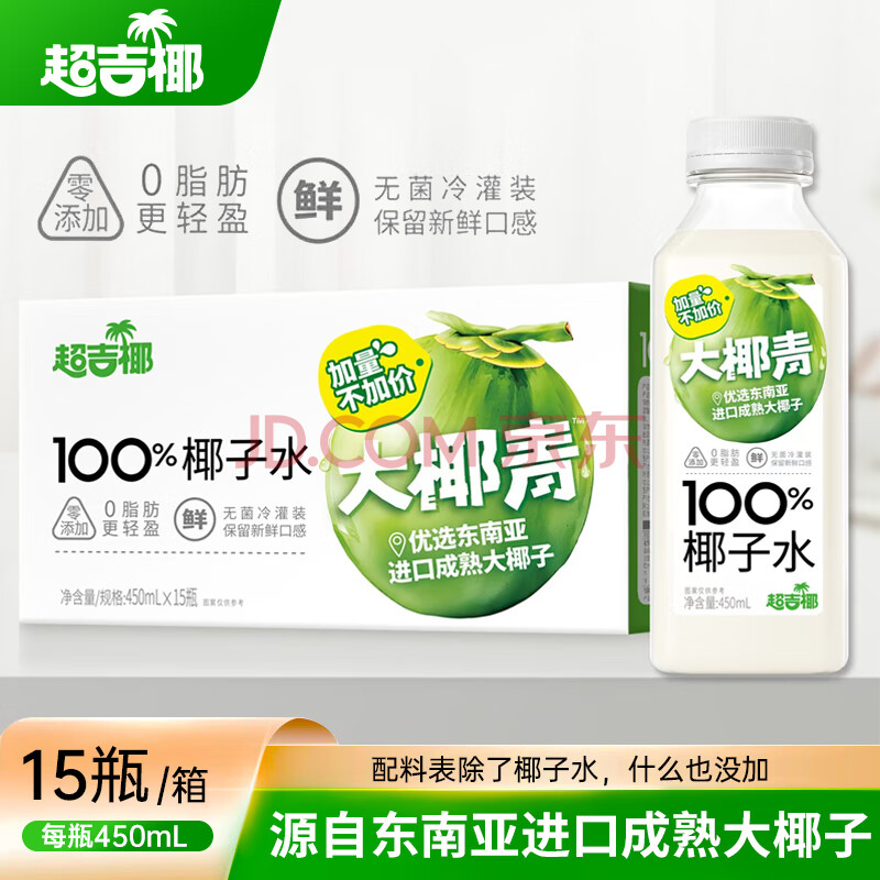 商品名称:超吉椰大椰青100%纯椰子水椰汁果汁饮料天然电解质水450ml*15瓶
