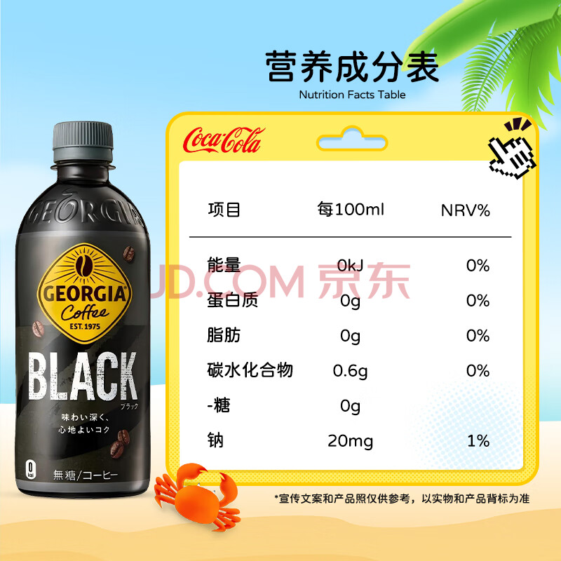 商品名称:可口可乐乔治亚黑咖啡饮料500ml*6瓶 即饮咖啡 黑咖啡饮料进口