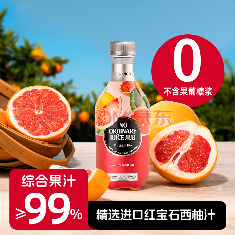 > DRINKNOD果滋含汽果汁355ml*15气泡水饮料红宝石西柚汁