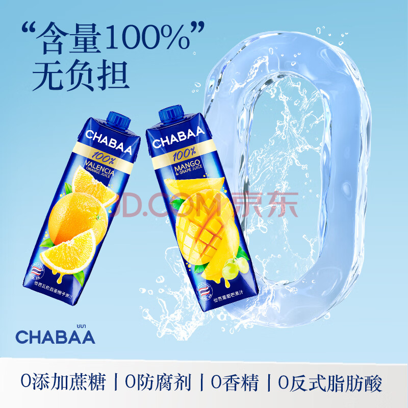 > 恰芭泰国CHABAA恰芭进口果汁0脂肪桃芒果果汁纯果汁喜宴饮料1L