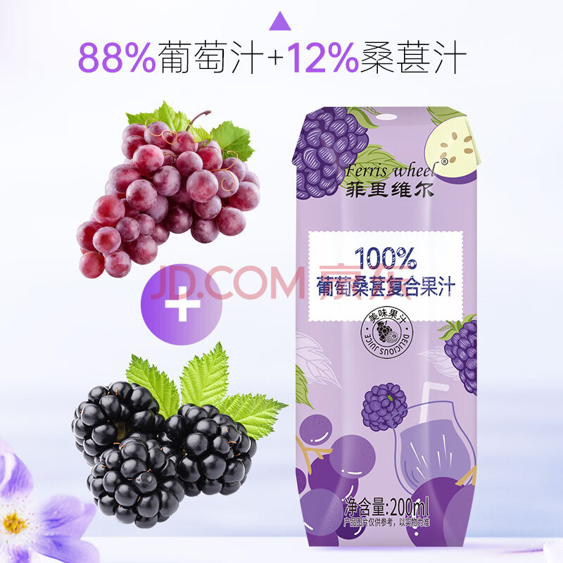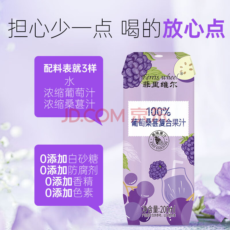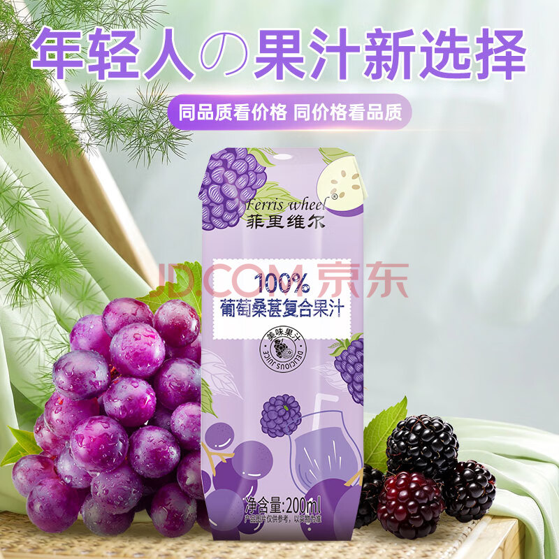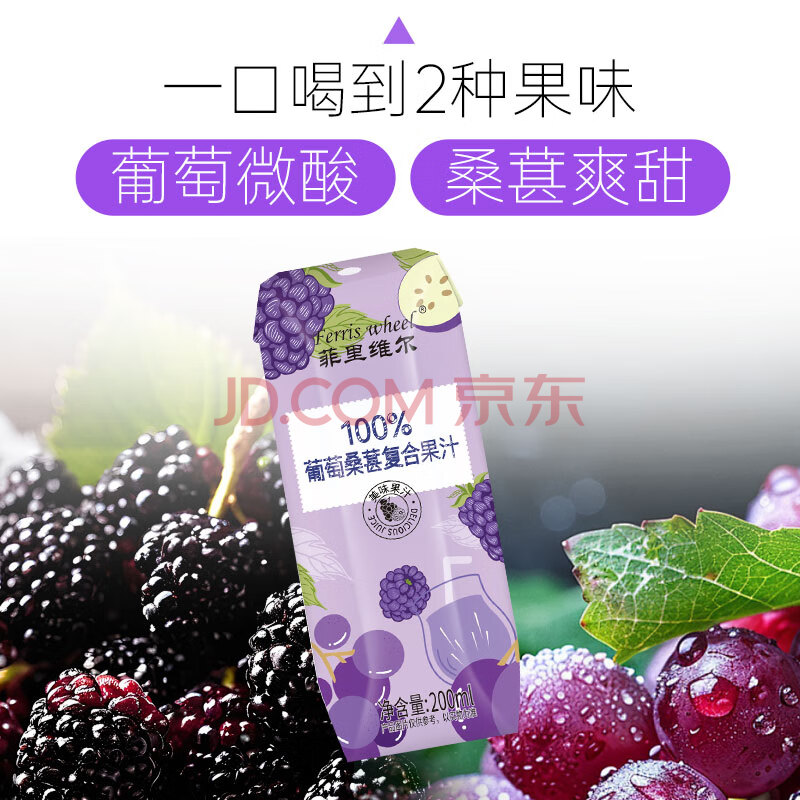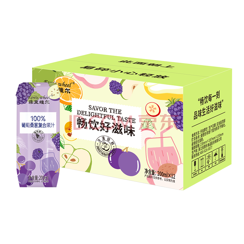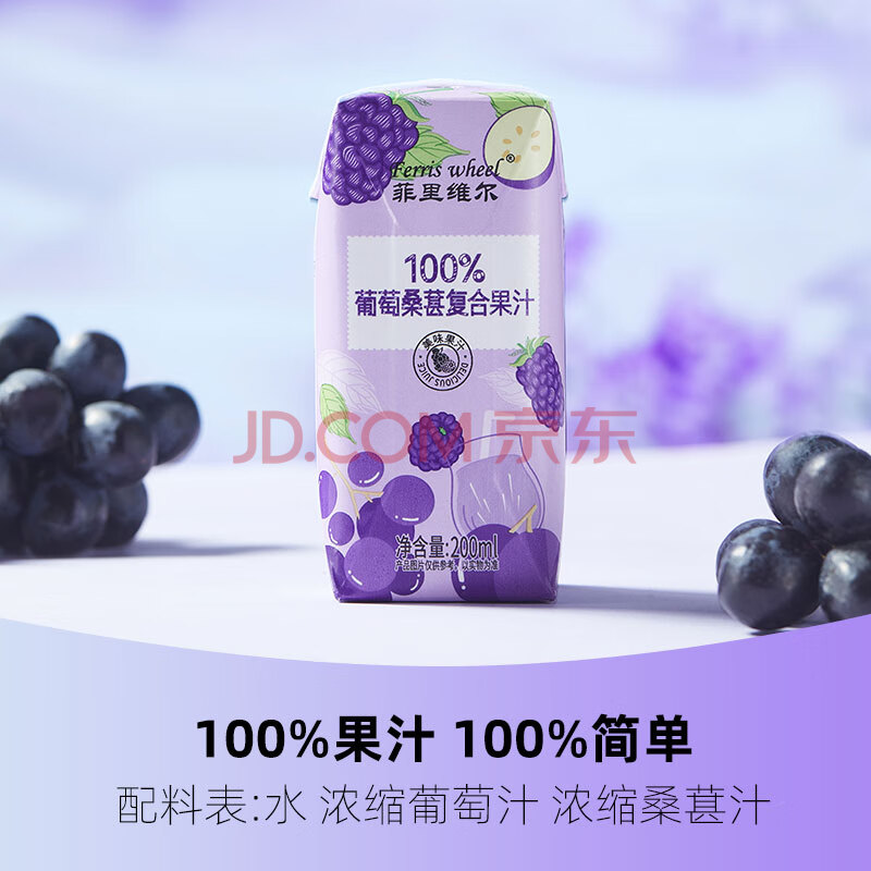 商品名称:菲里维尔 FERRIS WHEEL葡萄桑葚汁饮料0防腐剂0脂肪100%果汁饮品 200ml*12瓶