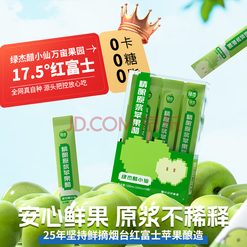 商品名称:绿杰醋小仙苹果醋原浆 精酿10ml*10条 生酮0糖0脂0卡无防腐剂饮料便携小包装