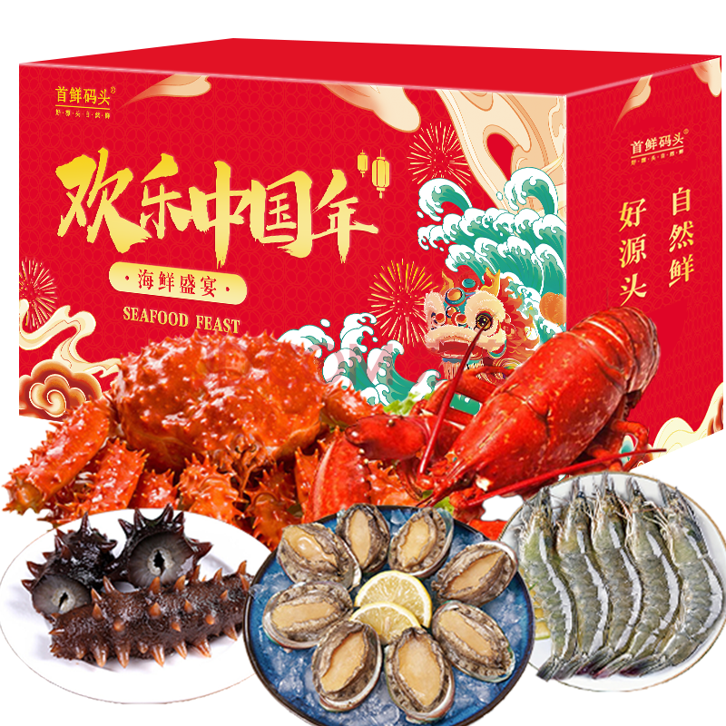 首鲜码头【现货】首鲜码头净重海鲜礼盒大礼包14种9.18斤含大龙虾面包蟹春节送礼年夜饭源头直发