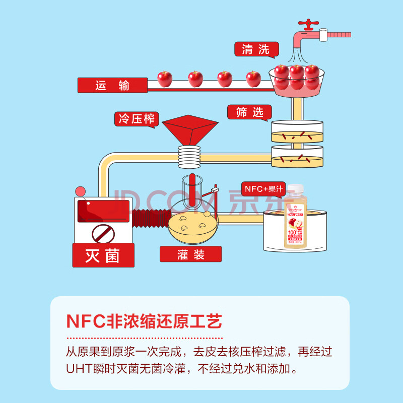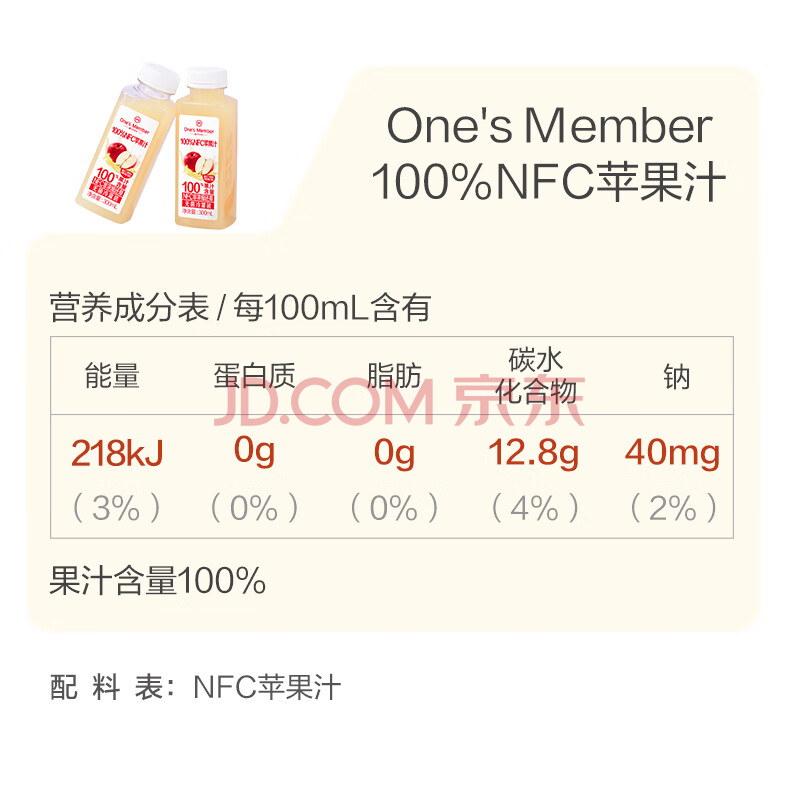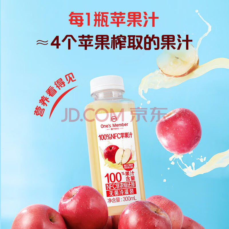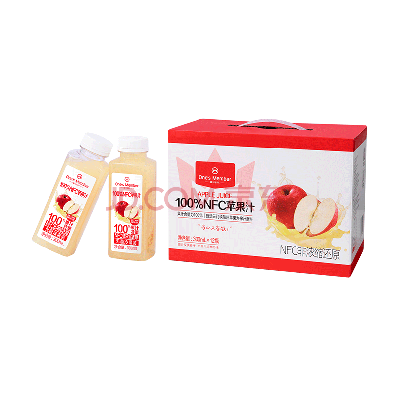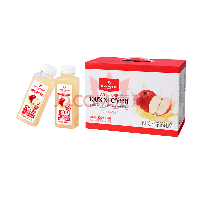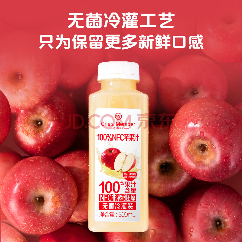 商品名称:1号会员店100%NFC冷藏苹果汁 0脂0添加纯果蔬汁水果榨汁饮料300ml*12礼盒装