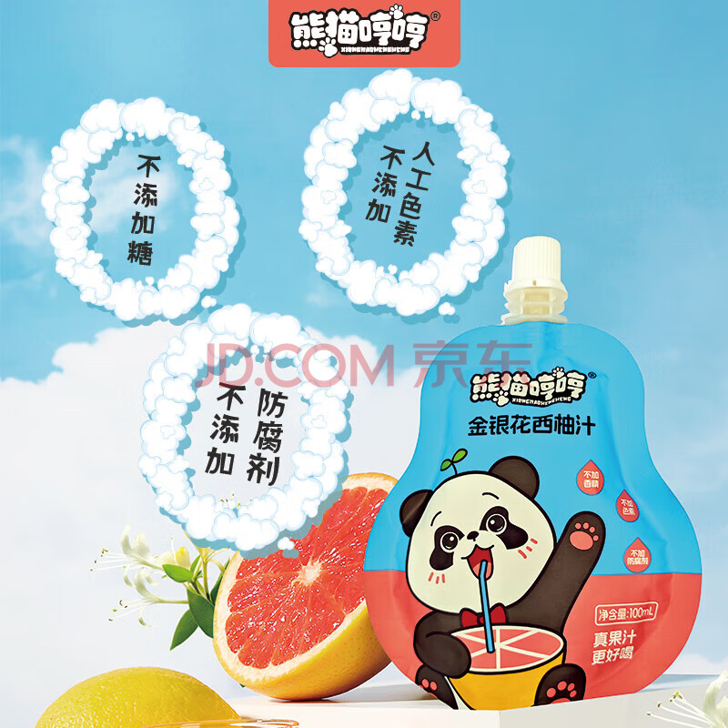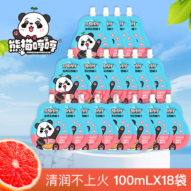 商品名称:熊猫哼哼金银花西柚汁柚子汁儿童零食果汁饮料 100ml*18袋