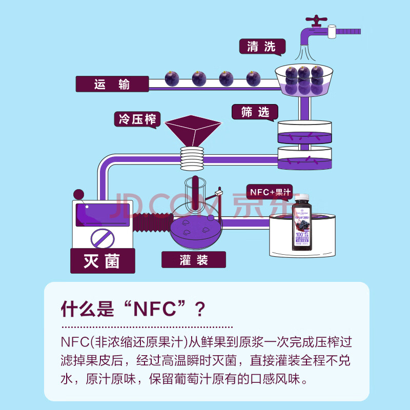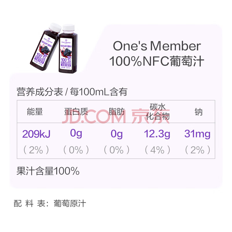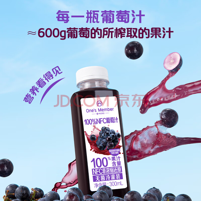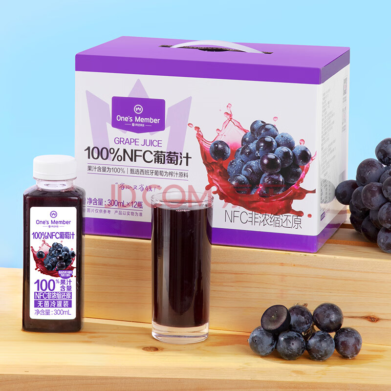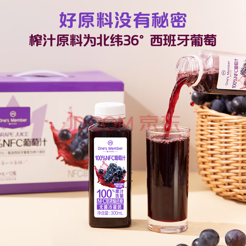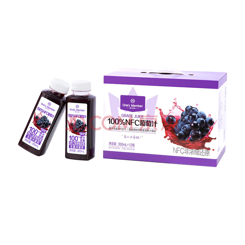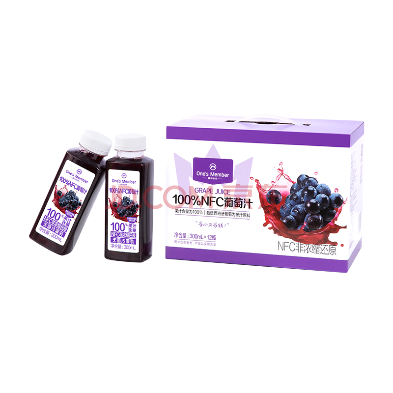 商品名称:1号会员店100%NFC冷藏葡萄汁 0脂0添加纯果蔬汁水果榨汁饮料300ml*12礼盒装