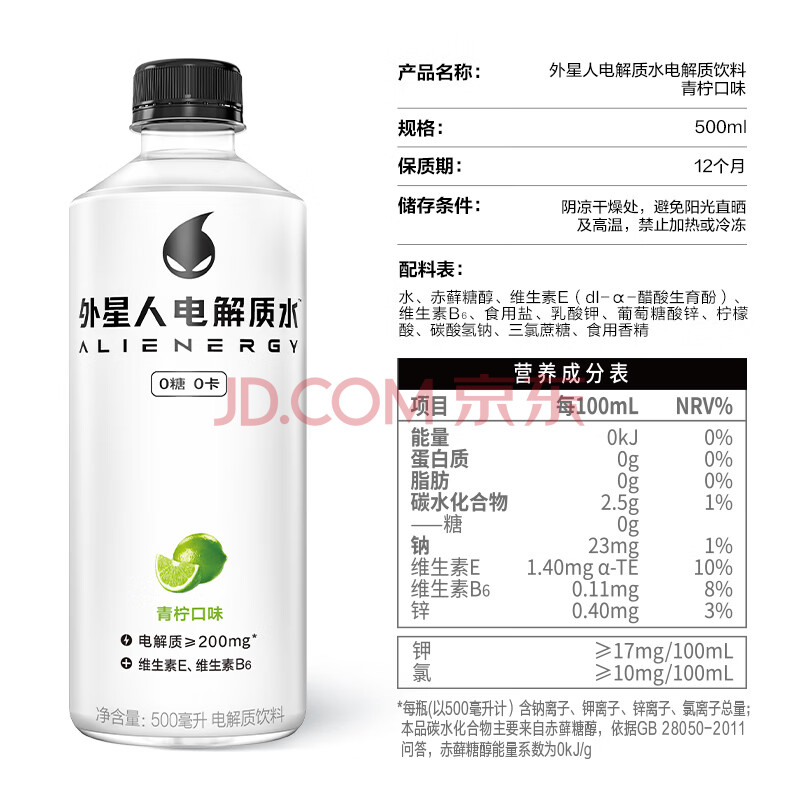 商品名称:外星人电解质水0糖0卡饮料 青柠口味 500mL*15瓶