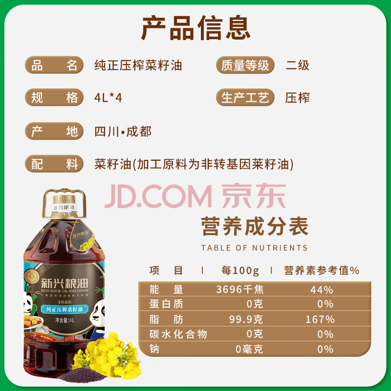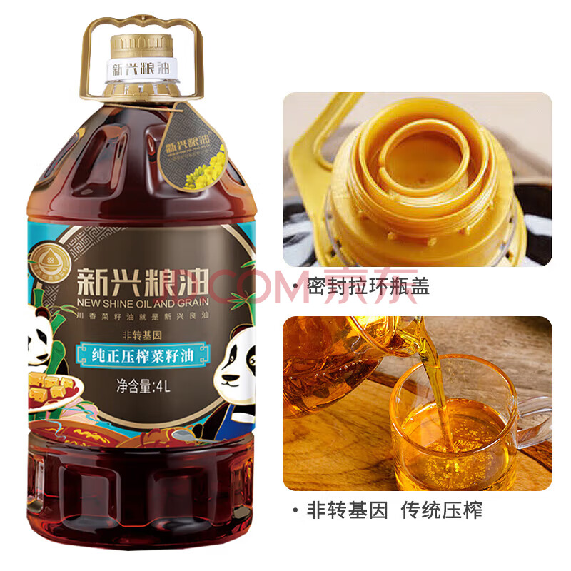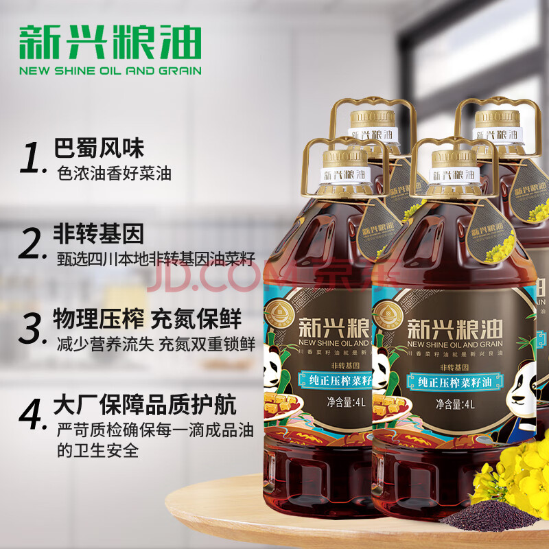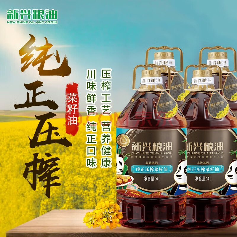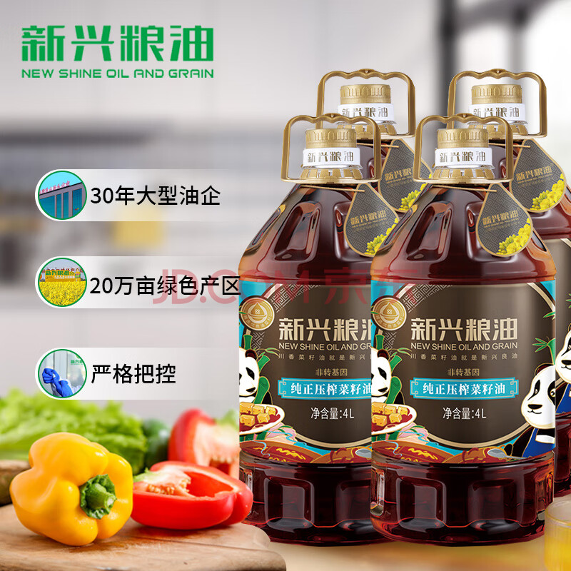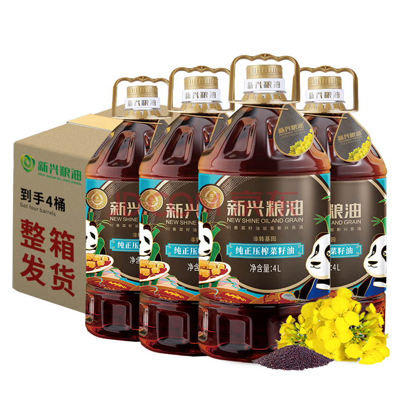 商品名称:新兴粮油【保真菜籽油】纯正菜籽油 4L*4桶整箱囤货装食用油 非转基因压榨