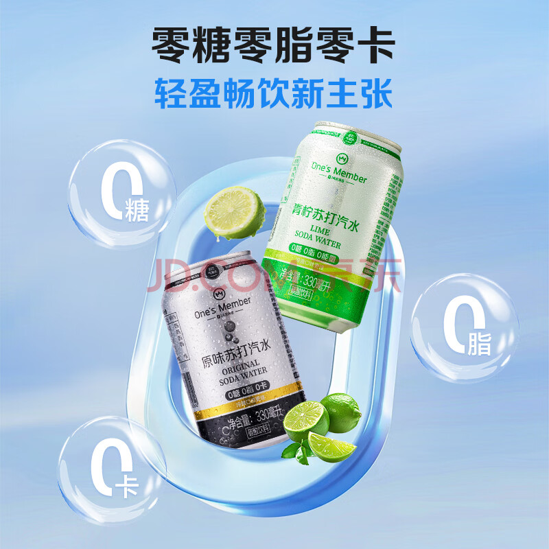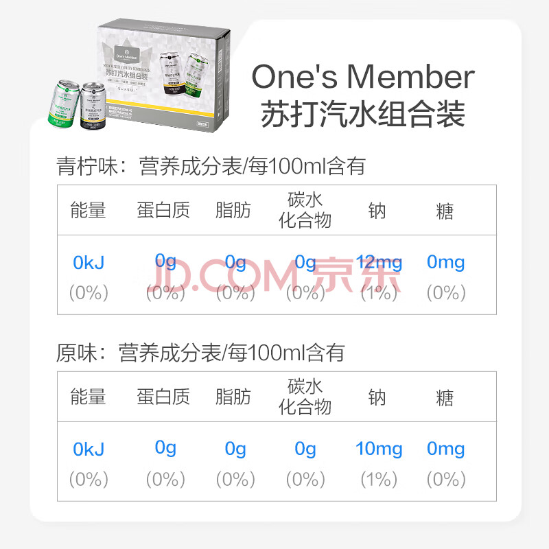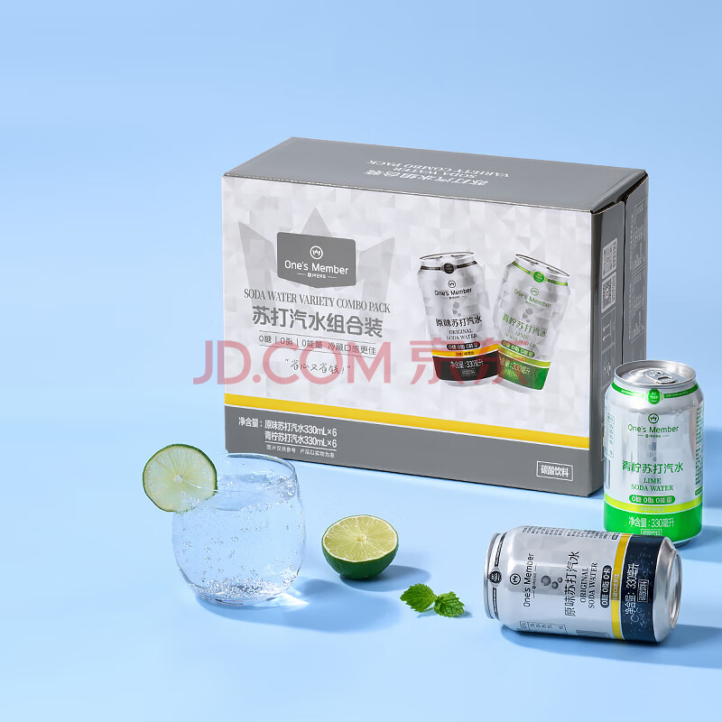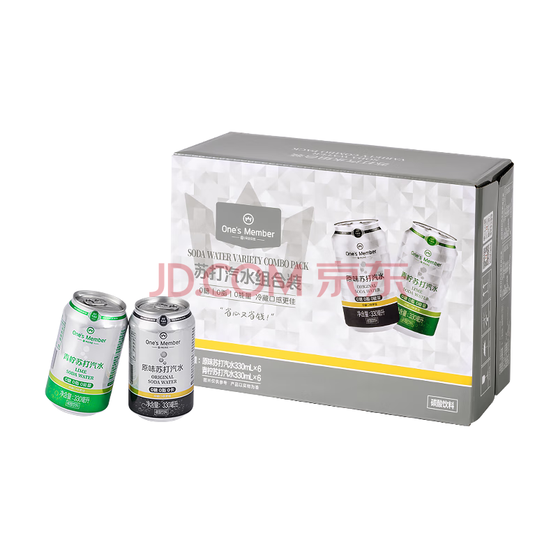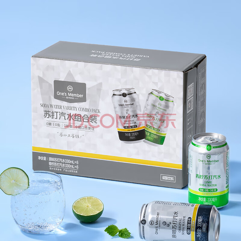 商品名称:1号会员店青柠+原味苏打气泡水0糖0卡调酒饮料混合装330ml*12罐/箱(各6罐)
