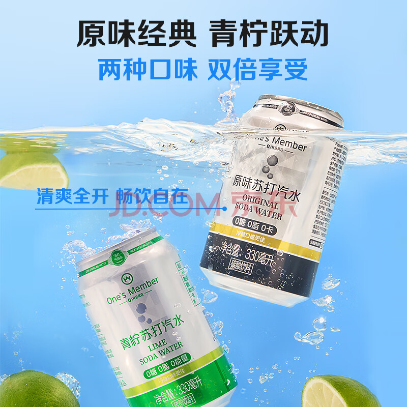 > 1号会员店青柠+原味苏打气泡水0糖0卡调酒饮料混合装330ml*12罐/箱(各6罐)