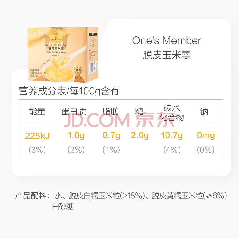商品名称:One's Member脱皮玉米羹1.8kg 300g*6袋 0添加剂 开袋即食 方便速食早餐粗粮粥