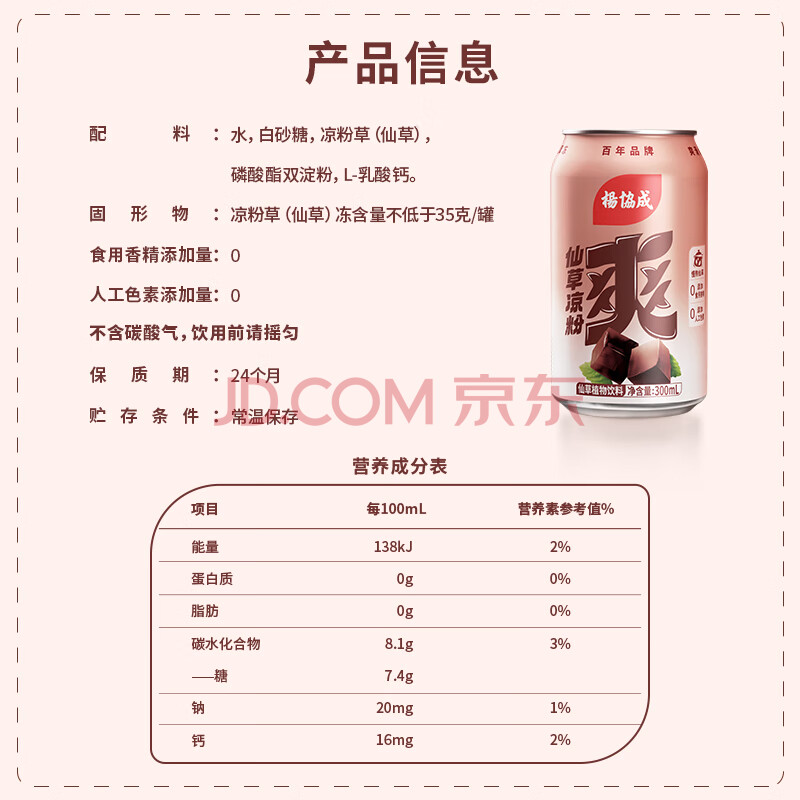 商品名称:杨协成清凉爽仙草凉粉植物饮料 300ml*24罐 粒粒爽滑 火锅烤肉搭子