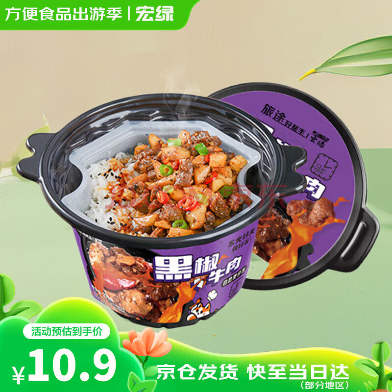 宏绿(HONGLU)自热米饭 五色粗粮米高纤低脂懒人代餐方便米饭 黑椒牛肉饭285g