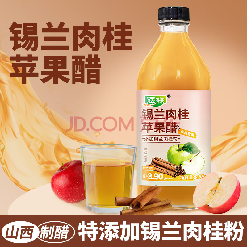 商品名称:海霖锡兰肉桂苹果醋3.9度475ml原浆肉桂山西醋酿造发酵无纯果醋非饮料