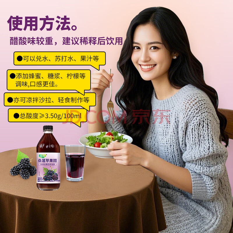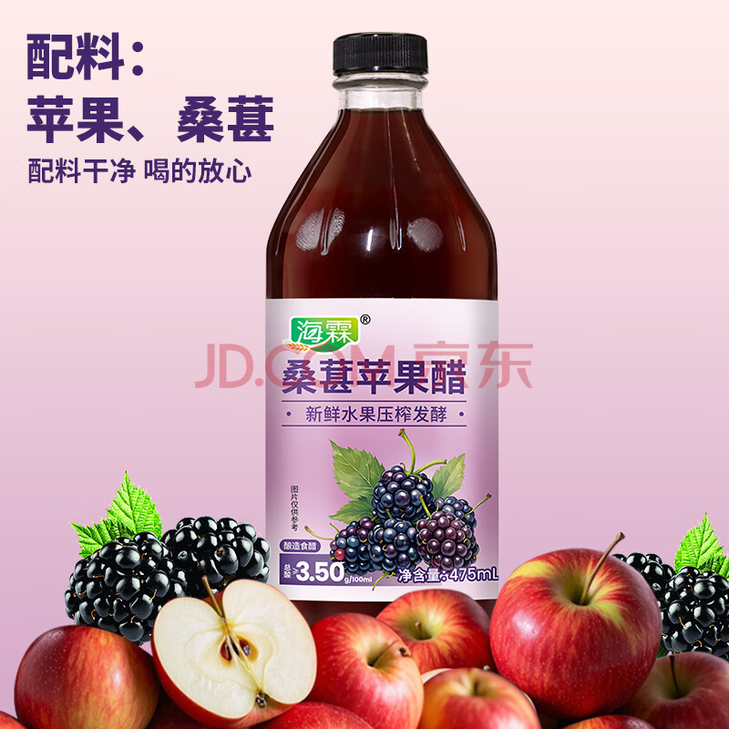 商品名称:海霖桑葚苹果醋3.5度475ml瓶装原浆山西醋纯0非饮料酿造果醋