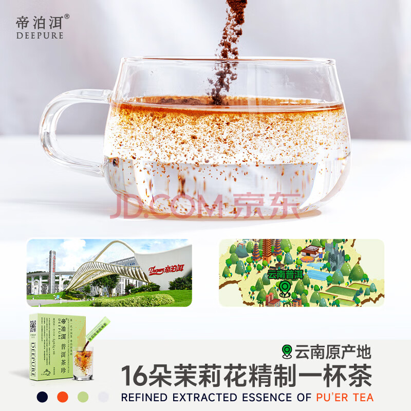 商品名称:帝泊洱茉莉普洱茶珍 云南大叶种普洱茶叶 0.5g*10支 速溶茶粉 盒装