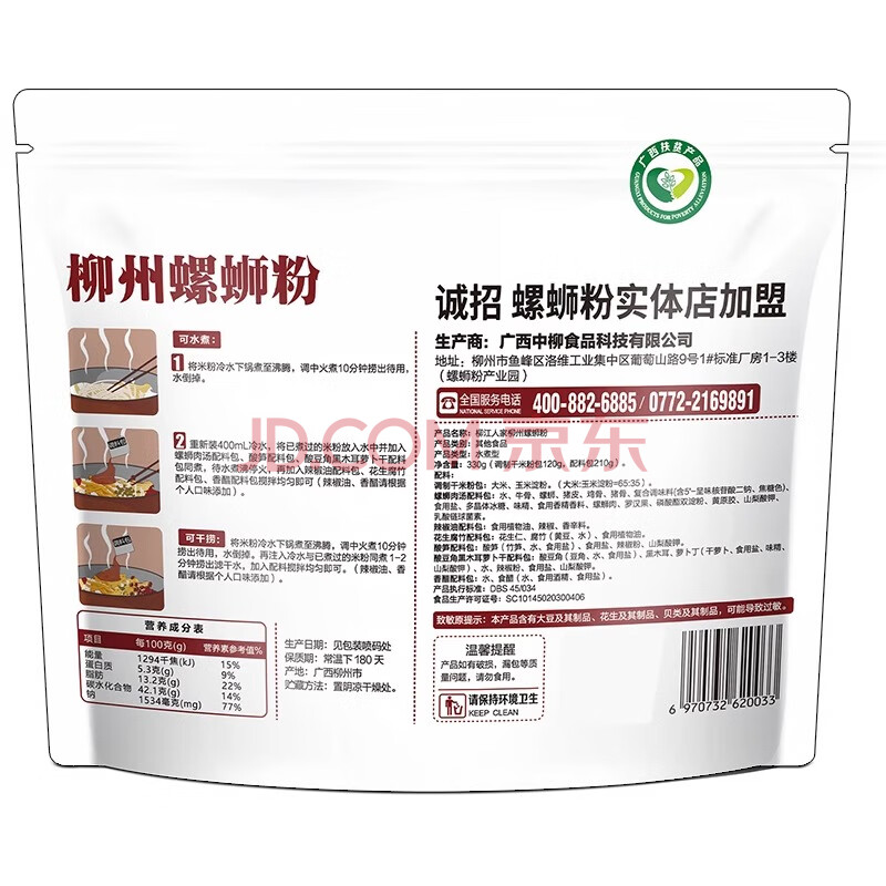 商品名称:柳江人家原味螺蛳粉330g*3袋装 柳州特产 方便速食粉丝米粉米线