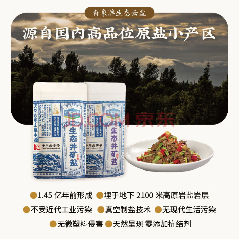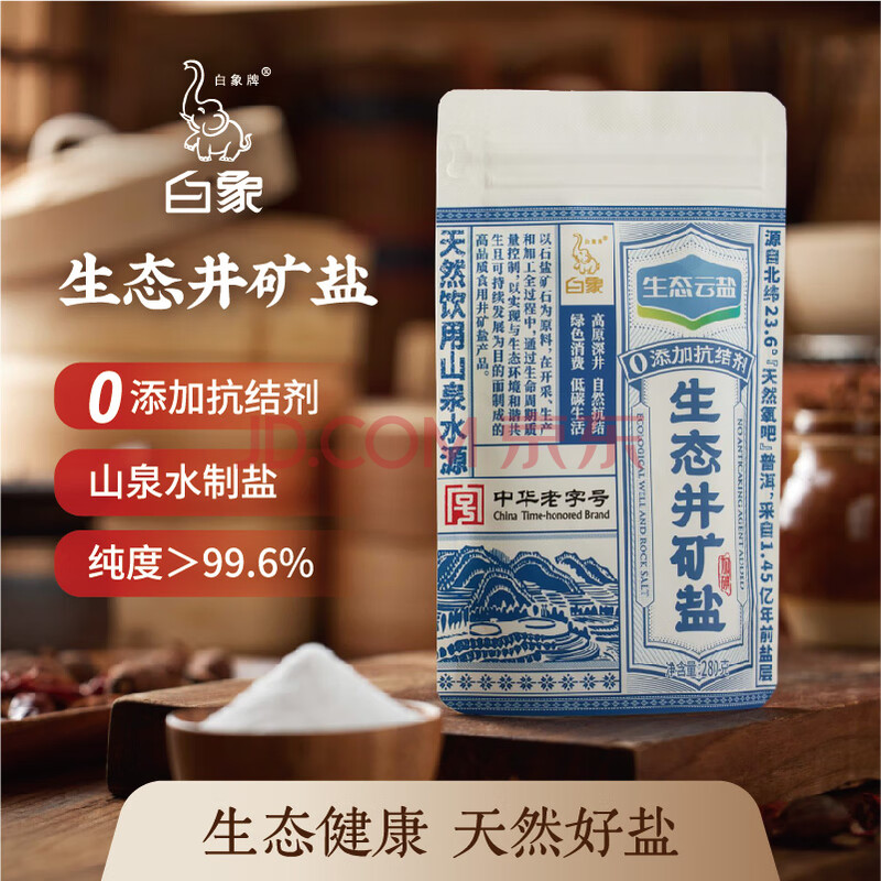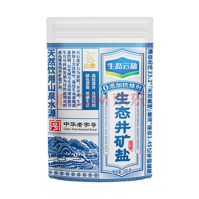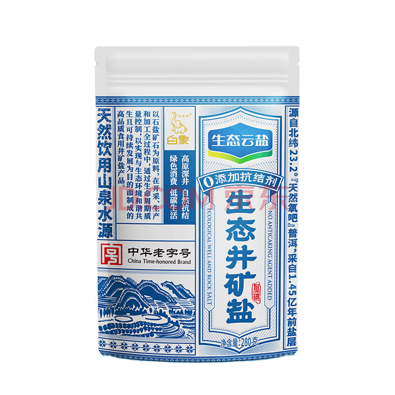 商品名称:白象牌生态云盐【加碘】生态井矿盐280g 纯净无污染无抗结剂 家用调味料
