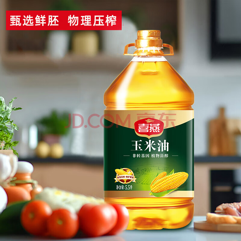 > 喜燕玉米油物理压榨一级食用油5.5L清新不油腻粮油植物油胚芽油