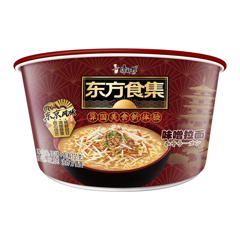 商品名称:康师傅方便面 东方食集 日式豆芽味噌面147g*12桶 泡面整箱装方便速食