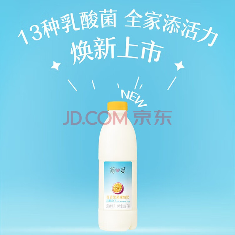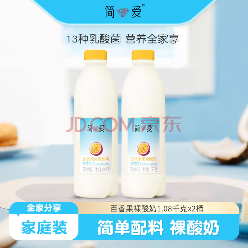 商品名称:简爱酸奶 家庭装 大桶装酸奶 生牛乳 百香果味1.08kg*2瓶源头直发包邮