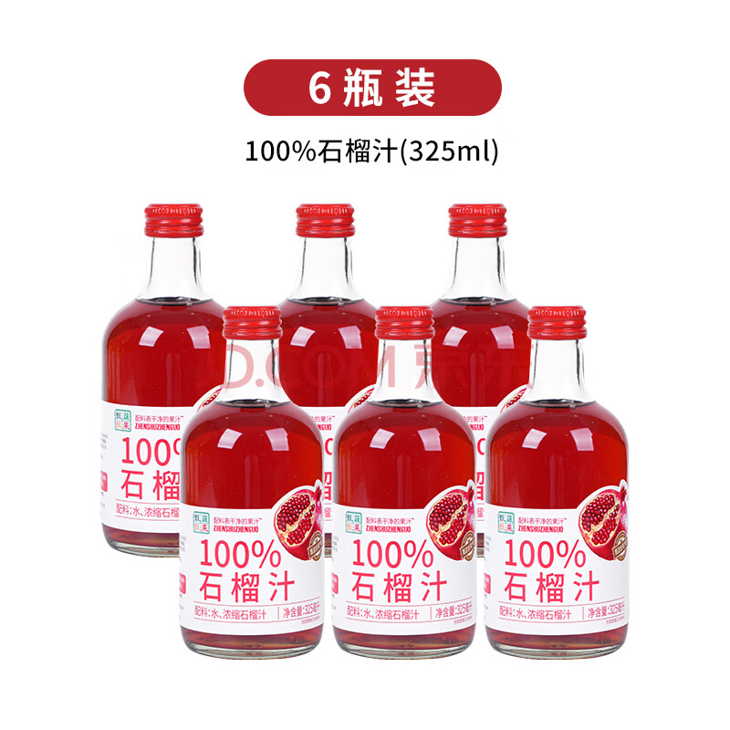 > 汇多滋甄蔬甄果100%纯果汁100%石榴汁 果汁饮料 玻璃瓶325ml*6瓶