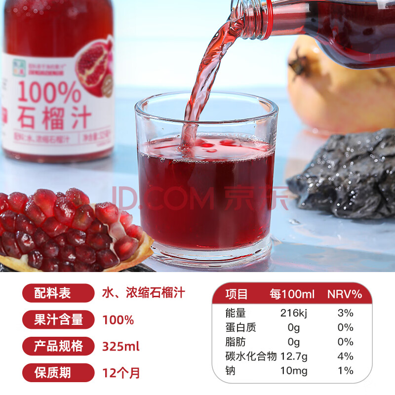 商品名称:汇多滋甄蔬甄果100%纯果汁100%石榴汁 果汁饮料 玻璃瓶325ml*6瓶