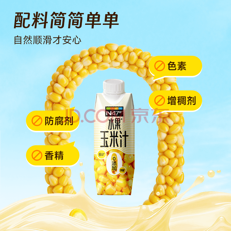 商品名称:N47°北纬47水果玉米汁245ml*8瓶低GI鲜榨0蔗糖添加年货送礼整箱饮料