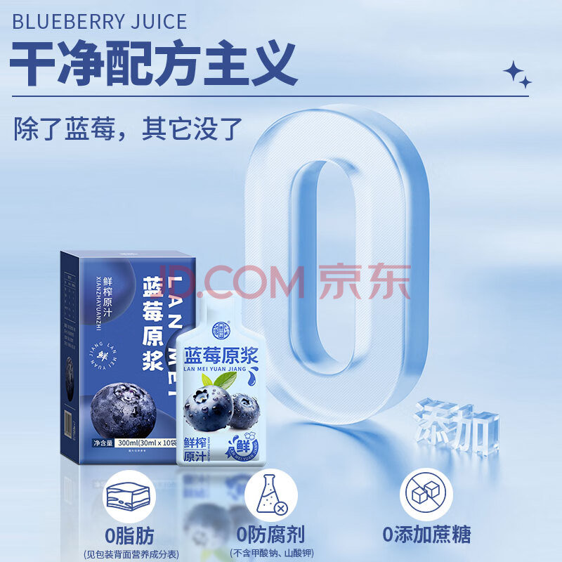 养益君蓝莓汁蓝莓原浆100%蓝莓汁饮料纯果汁果饮300ml(30ml*10袋)