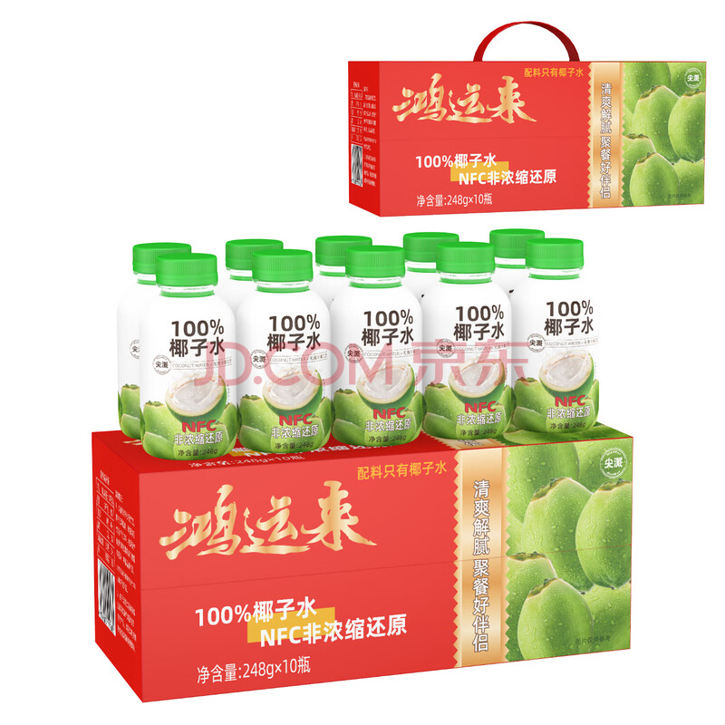 > 尖派100%椰子水248g*10礼盒装nfc果汁纯天然电解质水饮料椰青椰汁水