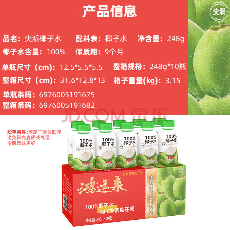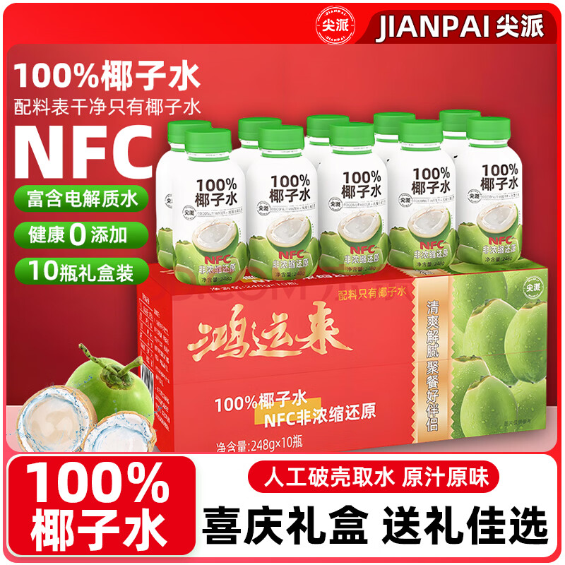 商品名称:尖派100%椰子水248g*10礼盒装nfc果汁纯天然电解质水饮料椰青椰汁水