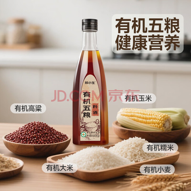 商品名称:林小生有机五粮料酒10度 500g【0农残】家用去腥解膻烹调炒菜炖肉调料