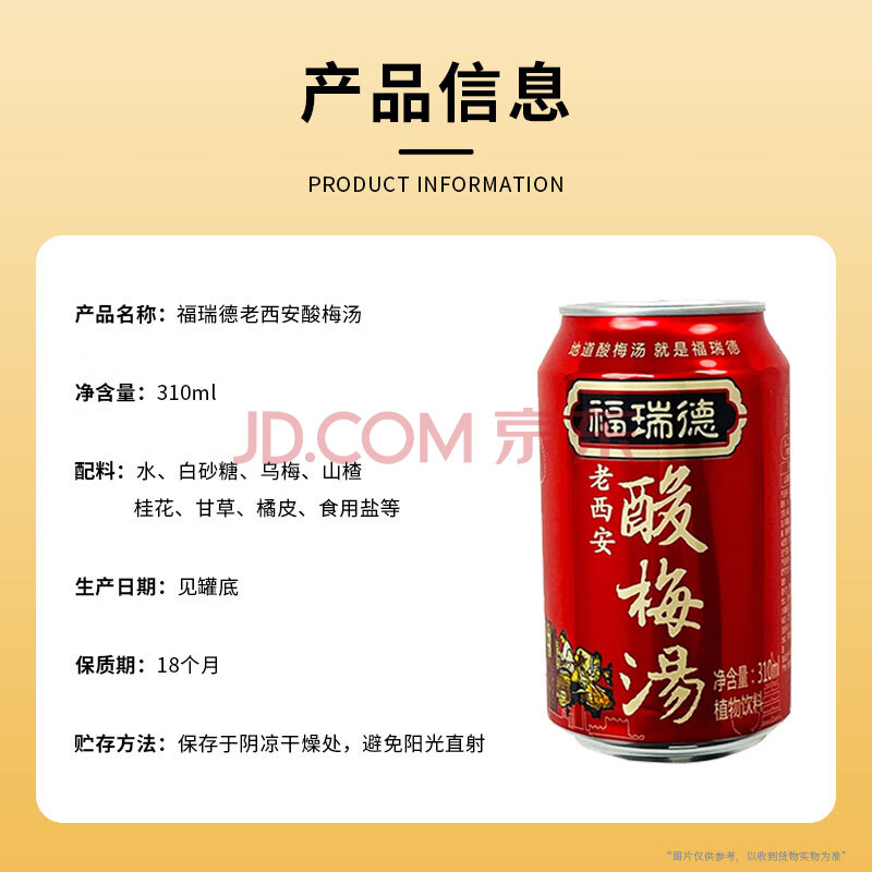 商品名称:福瑞德桂花酸梅汤310ml*12罐陕西西安特产夏季清凉山楂乌梅汁饮料